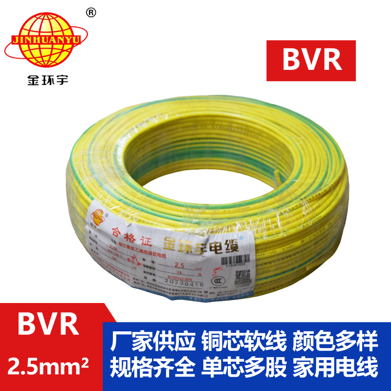 BVR2.5平方就是導(dǎo)線截面為2.5平方毫米的一種銅芯聚氯乙烯絕緣軟電線,適用于交流額定電壓450/750V及以下的動力裝置的固定敷設(shè)。