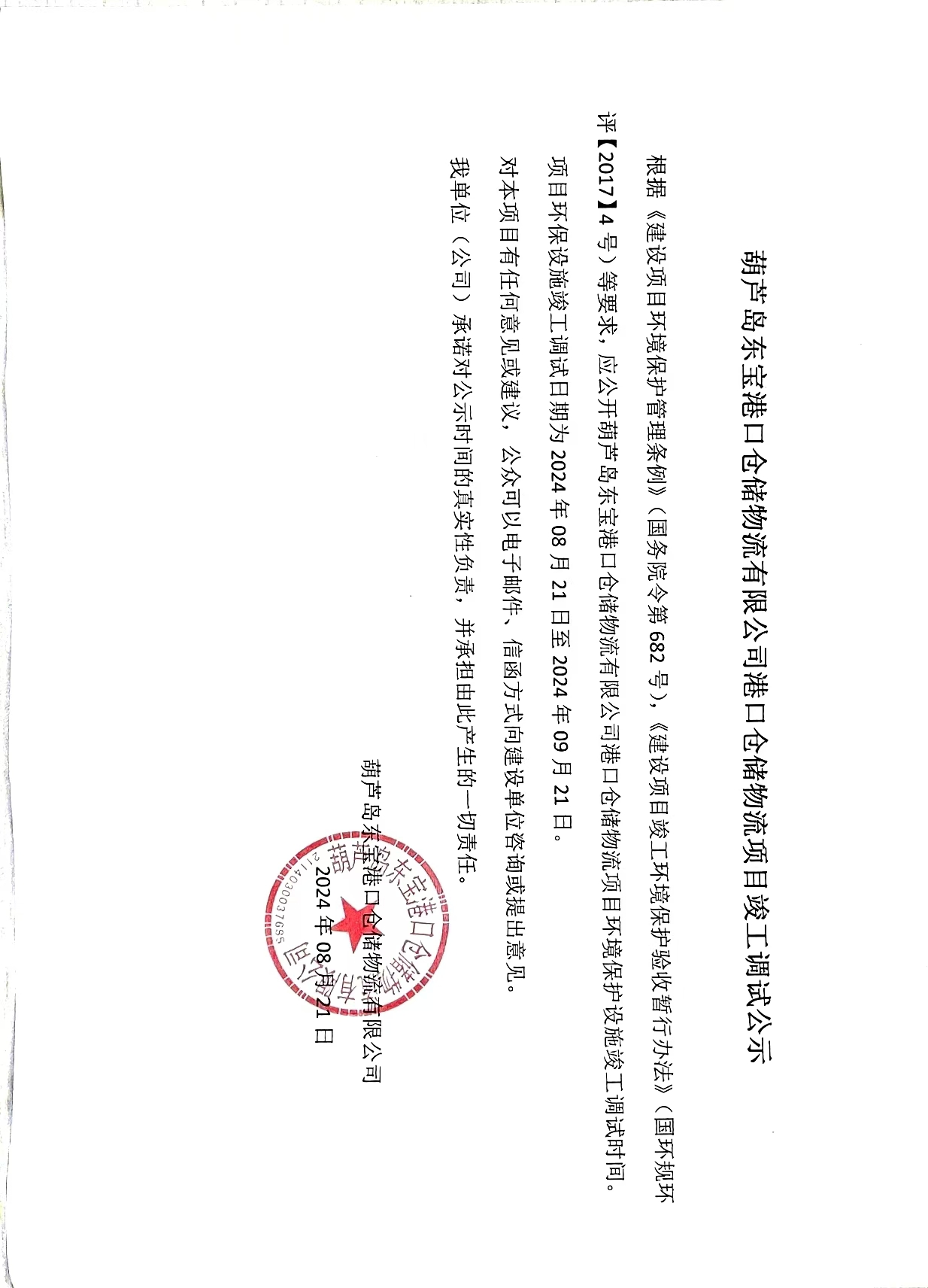 【公示文件】東寶港口倉儲物流項目竣工調(diào)試公示