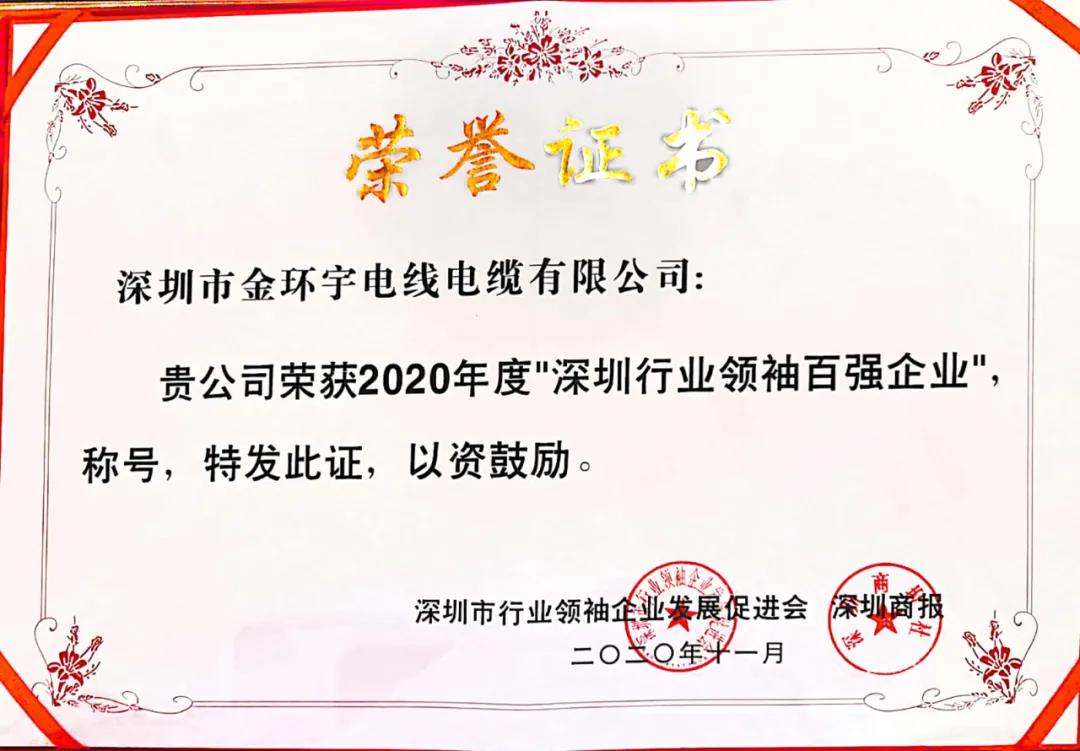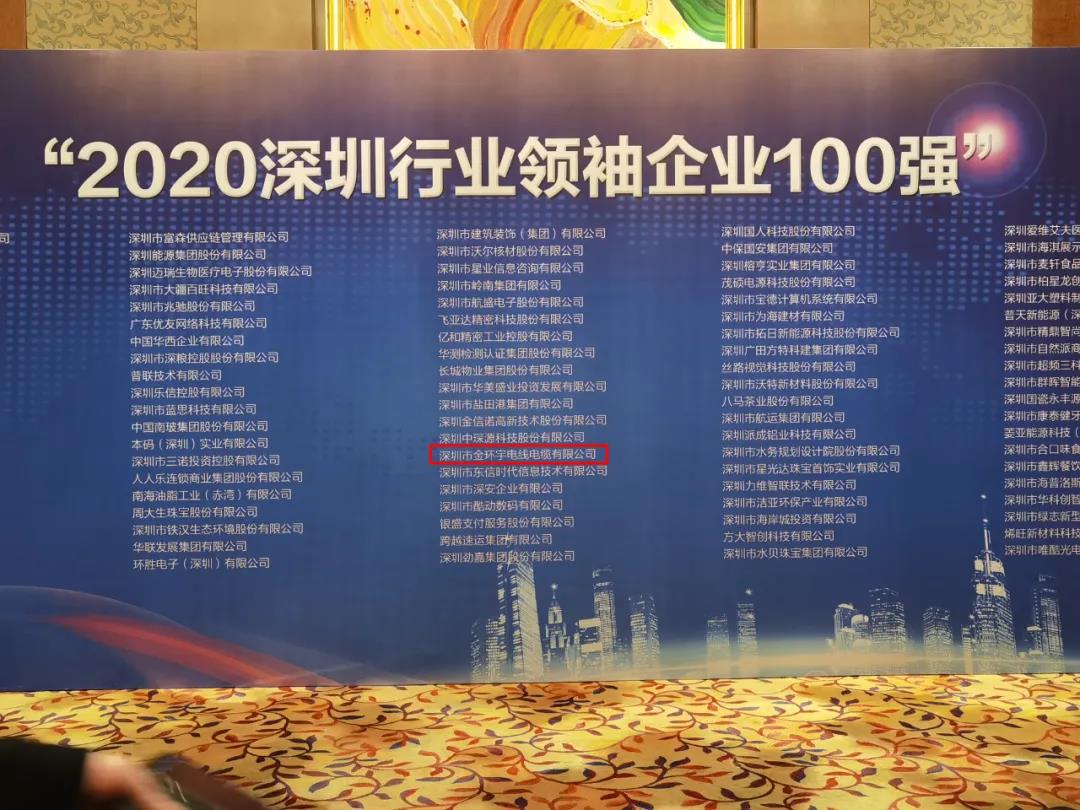 深圳市金環(huán)宇電線電纜有限公司本次很榮幸入選“2020深圳行業(yè)領(lǐng)袖企業(yè)100強(qiáng)”。
