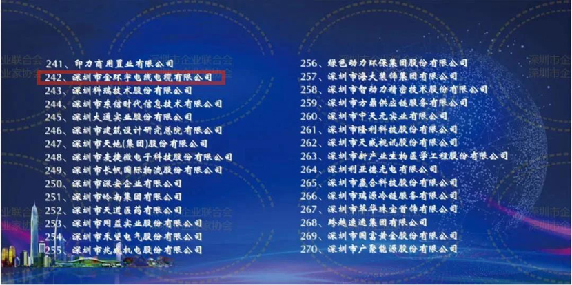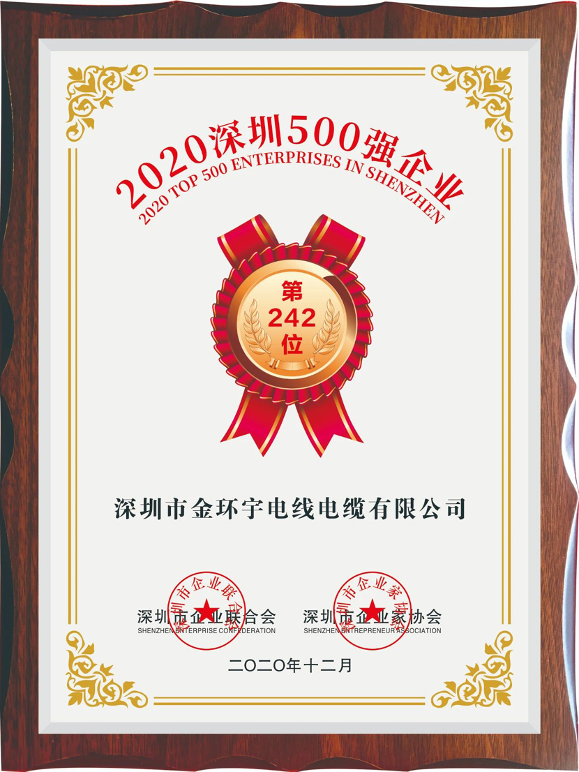 金環(huán)宇電線電纜位列“2020深圳500強(qiáng)企業(yè)”